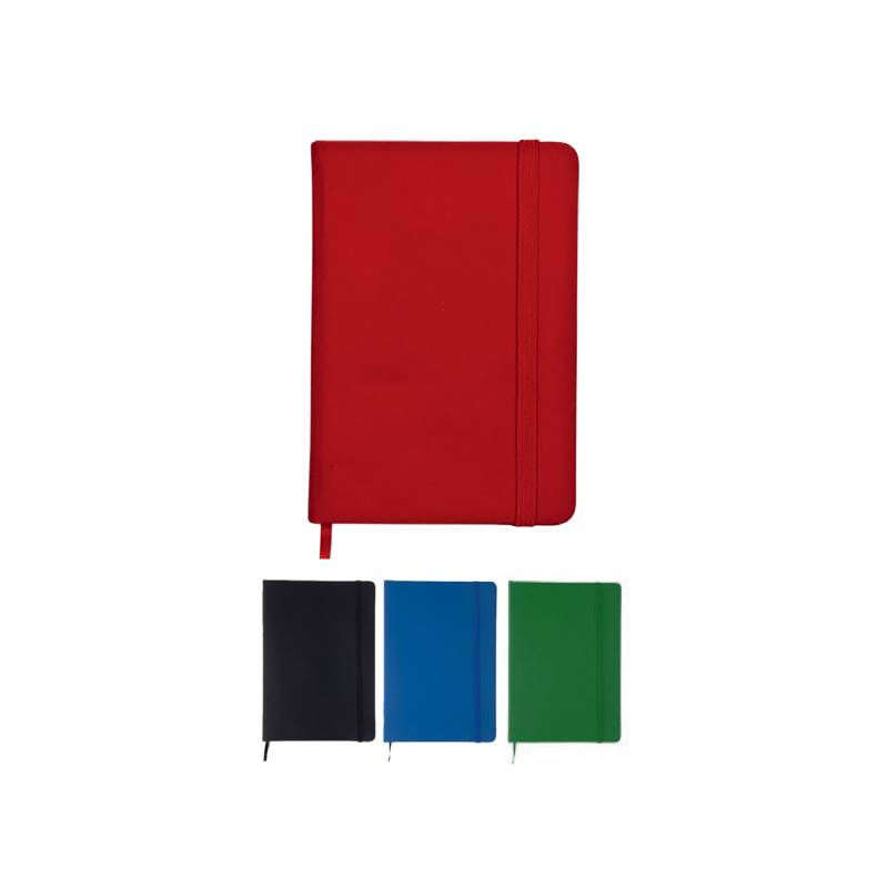 Beležka črtasta A5 PU z zapiranjem na elastiko in s 96 črtastimi listi. Na voljo v različnih barvah. Priročno promocijsko darilo. Beležka ima označevalec strani.
