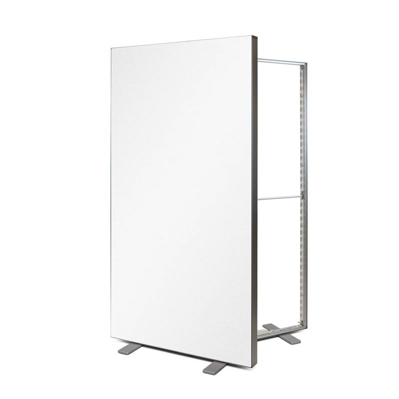 Dvostransko stojalo z LED osvetlitvijo se enostavno sestavi in pospravi. Grafiko natisnemo na poliestrsko tkanino, na robu je našita guma ki jo potisnemo v okvir. Grafika je lepo napeta in osvetljena.