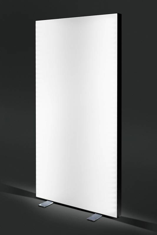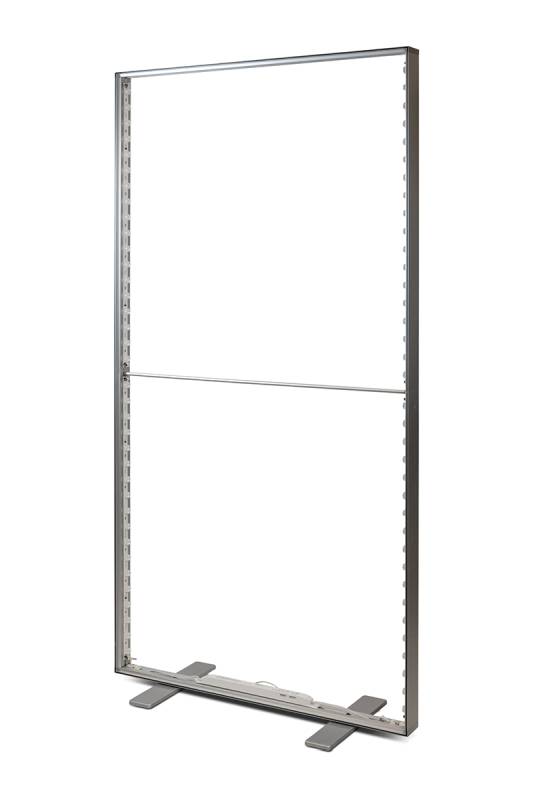 Dvostransko stojalo z LED osvetlitvijo se enostavno sestavi in pospravi. Grafiko natisnemo na poliestrsko tkanino, na robu je našita guma ki jo potisnemo v okvir. Grafika je lepo napeta in osvetljena.