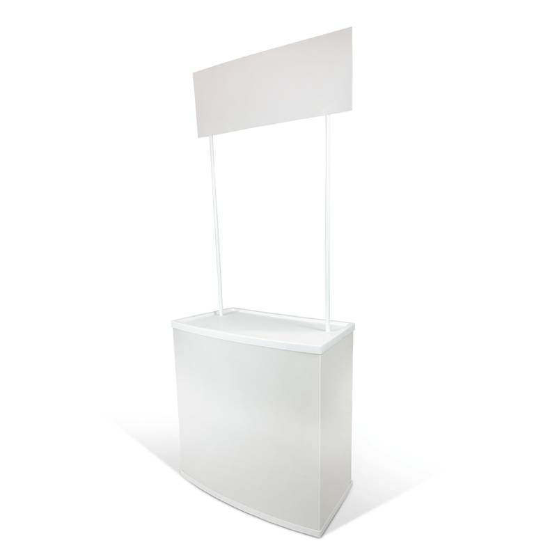 Plastičen pult s tablo za logotip se enostavno sestavi in pospravi brez dodatnega orodja. Je lahek in enostaven za prenašanje.