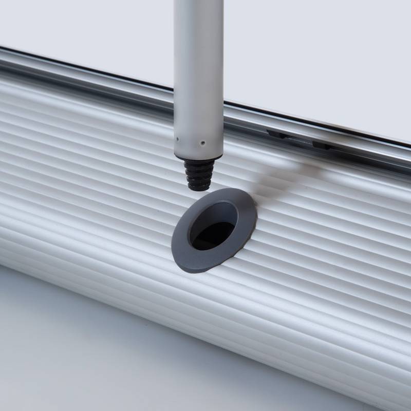 Izjemno stabilno in oblikovno in funkcionalno dovršeno stojalo primerno za pogosto uporabo in pogosto menjavo grafik. Grafika je vpeta v klip sistem, kar omogoča enostavno menjavo.